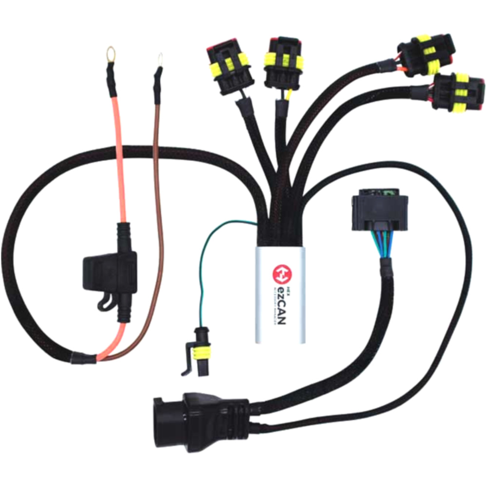 HEX ezCAN 4 Kanal CAN Bus Zubehörmanager zur frei programmierbaren Ansteuerung von nachträglich verbauten Scheinwerfer, Hupen, Bremsleuchten und anderen elektrischen Verbrauchern über die originalen Schalter eines BMW Motorrades.