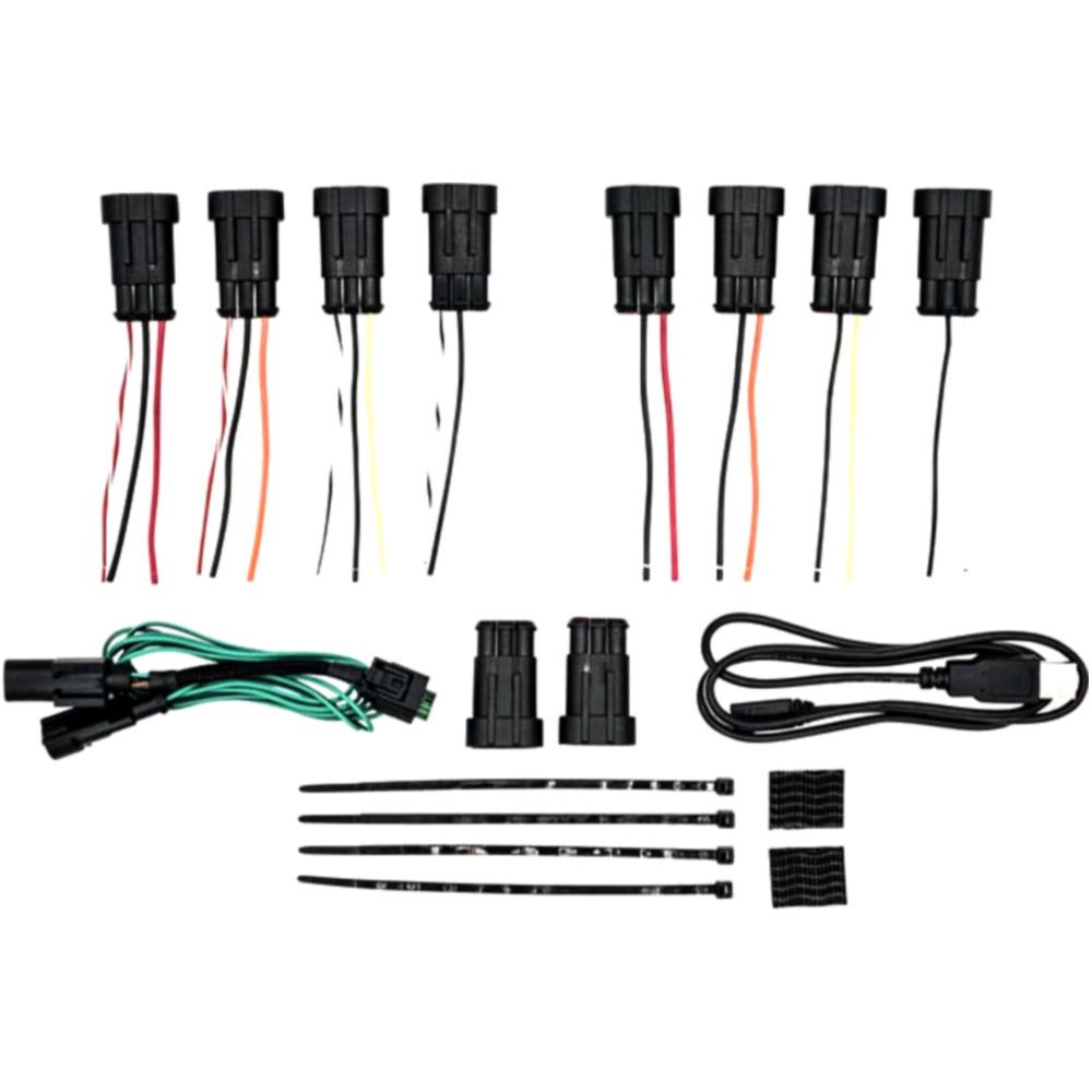 Spritzwassergeschützt, max. Last 4x10A (25A für 20 sek.), jeweils elektronisch abgesichert, inkl. je 4 Verbindungsstecker (2 oder 3 adrig), USB Kabel und Montagematerial, sowie Anleitung (EN) und Windows PC / Mac Konfigurationssoftware (Online).