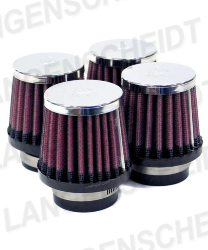 K & N universal air filters are available in round or oval shape, cylindrical or conical and with single or double flange. Available with flange diameter of 16 mm to 152 mm.