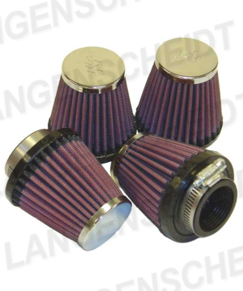 K & N universal air filters are available in round or oval shape, cylindrical or conical and with single or double flange. Available with flange diameter of 16 mm to 152 mm.