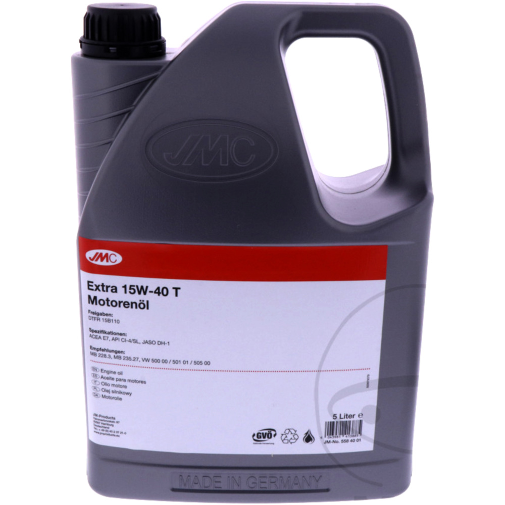 Designed to perform under extreme operating conditions, JMC Extra 15W-40 T accommodates extended oil change intervals while effectively reducing wear and keeping the engine's internals clean. Improve your vehicle's efficiency with reduced fuel consumption, excellent cold start behavior, and high lubricating film stability.