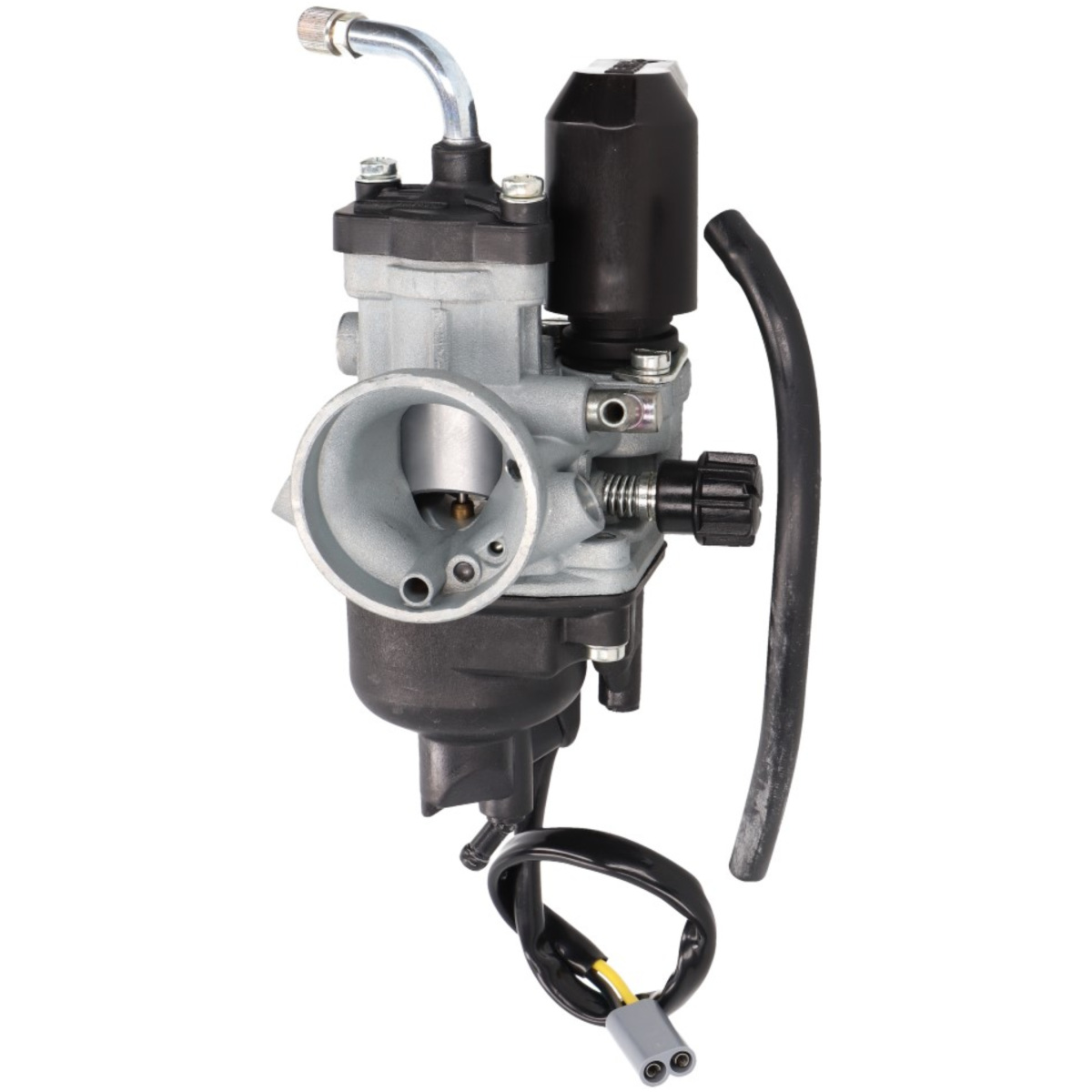 The Dellorto 20.5mm PHVB is typical for 2-stroke Maxi scooters. Depending on the vehicle type, either a Mikuni or such Dellorto is installed in the vehicles at the factory. Mikuni carburettors are usually not that easy to buy or fairly pricey. The PHVB 20.5 is an inexpensive alternative for a defective original carburettor. Moreover, a factory fitted Mikuni carburettor can be easily exchanged for these Dellorto carbs. Generally, the jetting has to be adjusted. This Dellorto is supplied with an E-Choke. Choke: E-Choke (included) oil port connection engine: 29mm connection Air filter side: 41mm main jet: M6 # 83 pilot jet: M5 # H45 Float: 13700.1 carburettor slide: 40 (metal version) needle choice: M6