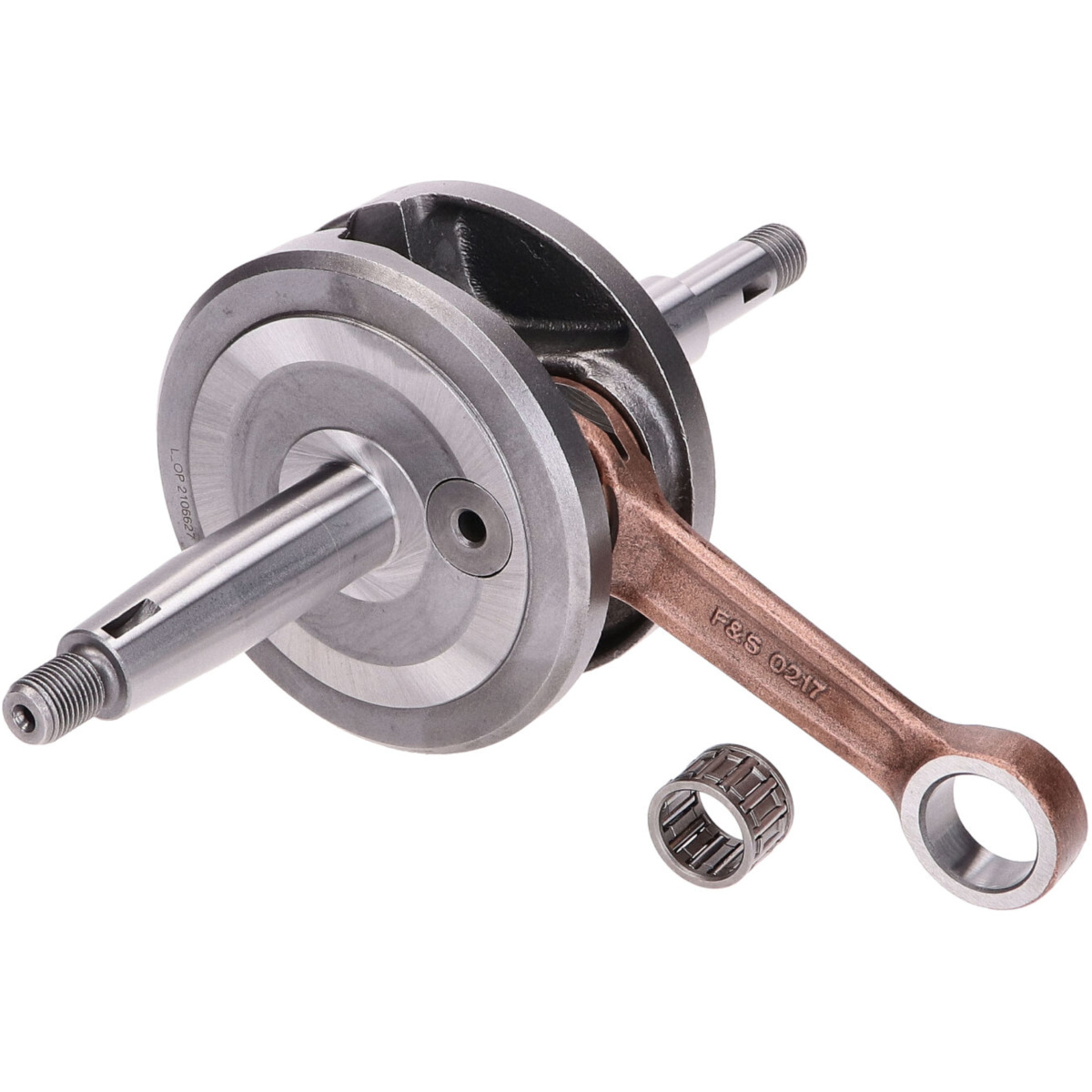 Quality crankshaft in the full cheek design including needle bearing with 44mm stroke and 85mm connecting rod suitable for Sachs or Hercules 50/5, 50/6 Mokick with 5-speed or 6-speed engine.