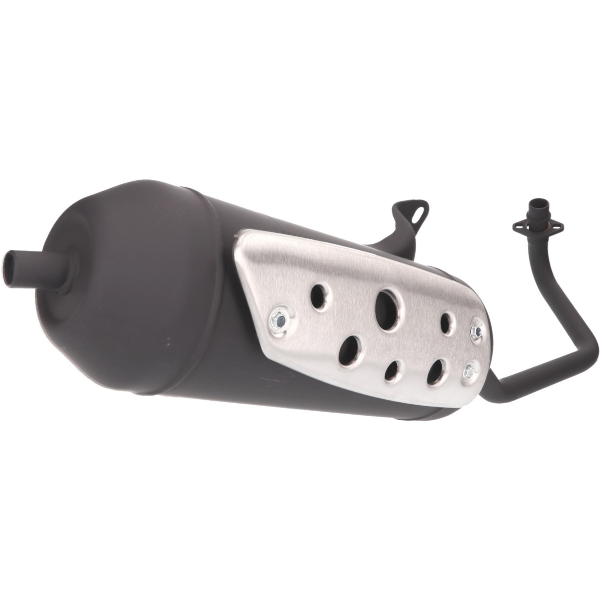 Tecnigas 4-stroke exhaust system. Fits scooter models with 50cc 4-stroke 2-valve Piaggio engine. The exhaust's performance is similar to the Tecno Straight and has a good fit. Original look, low sound.