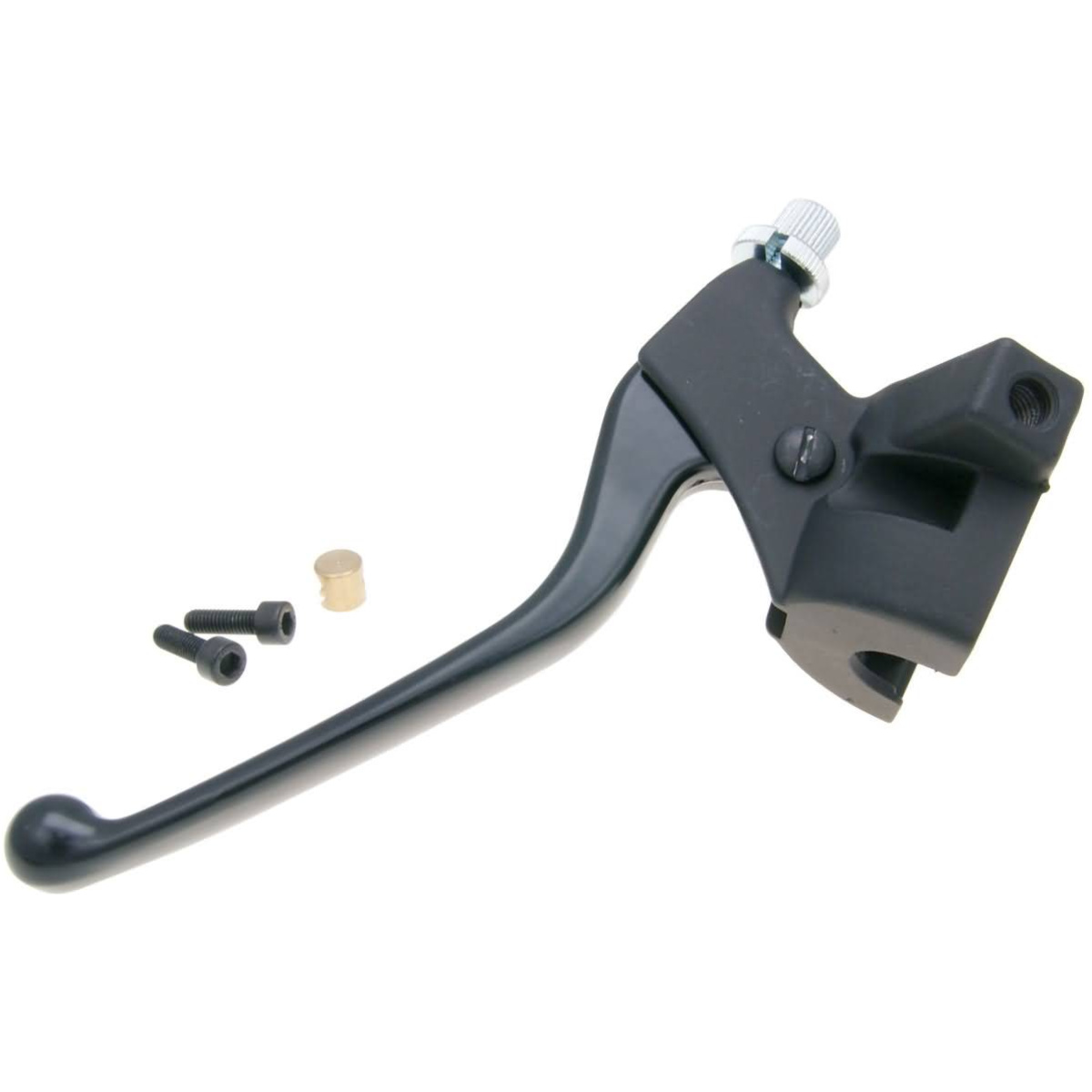 Clutch lever assembly with black lever as original replacement for Derbi Senda X-Treme and X-Race gear shift moped.