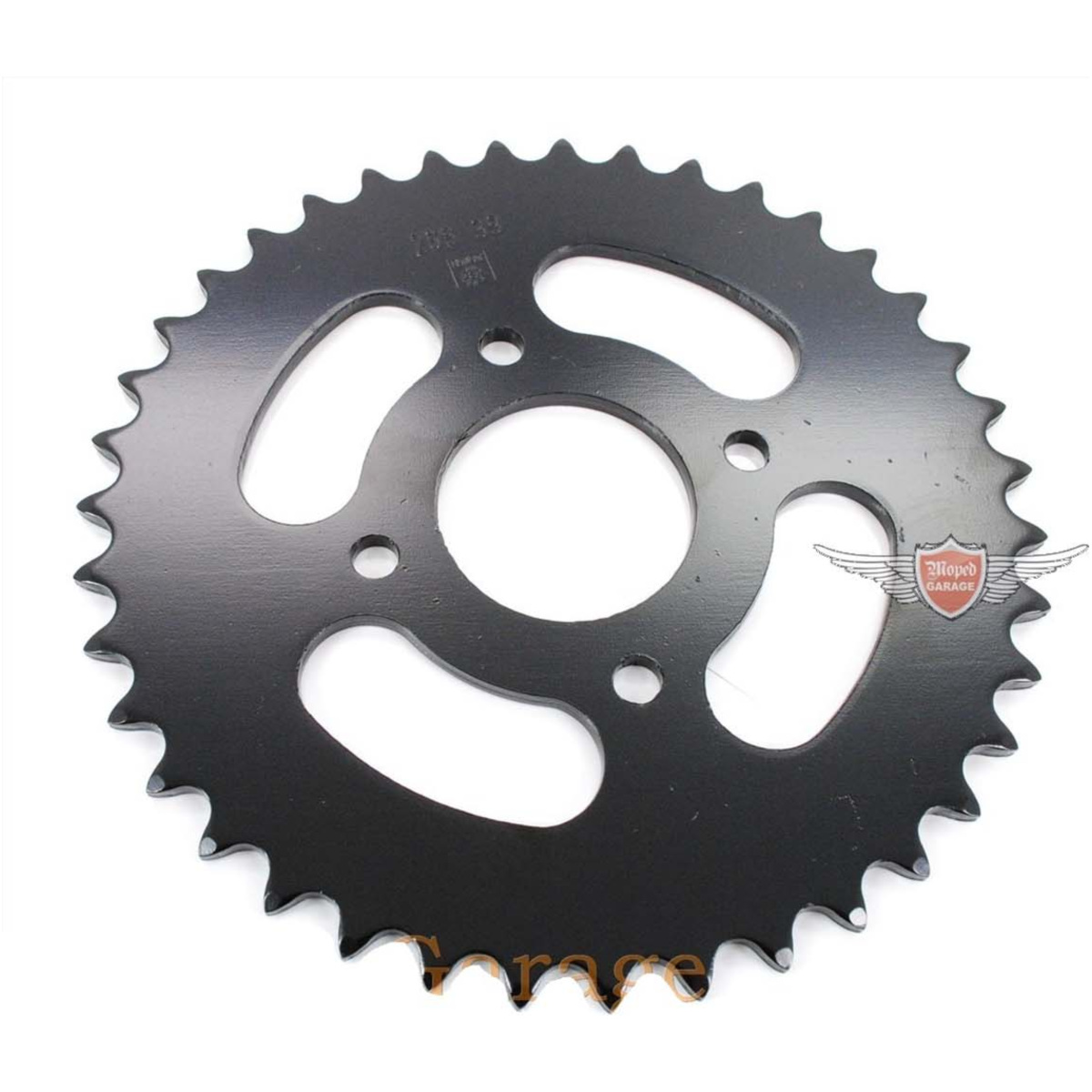 Reinforced Esjot tuning sprocket with 39 teeth suitable for Hercules Prima 1-6, MP 2, MP 4, MF 3, M 4, M 6, HR 2, Hobby Rider, P 1, P 3, MX 1, SX, M 5 with aluminum wheels, Optima 3, 4, SX, Pronto, Presto moped and moped and others. Top quality manufactured by Esjot in Germany.