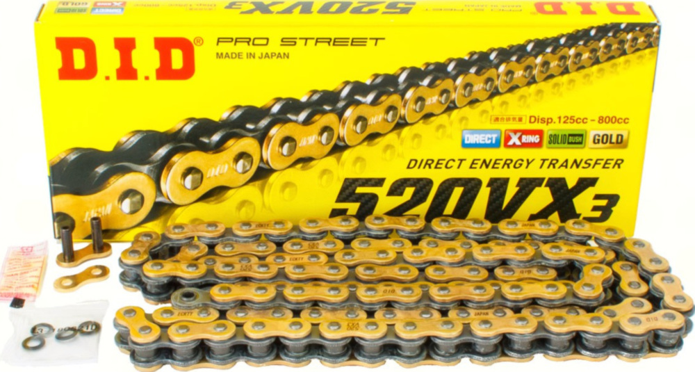 chain X-ring VX3, 520, 102 G&B with rivet lock / usable up to 96kW (130HP) / up to 750cc